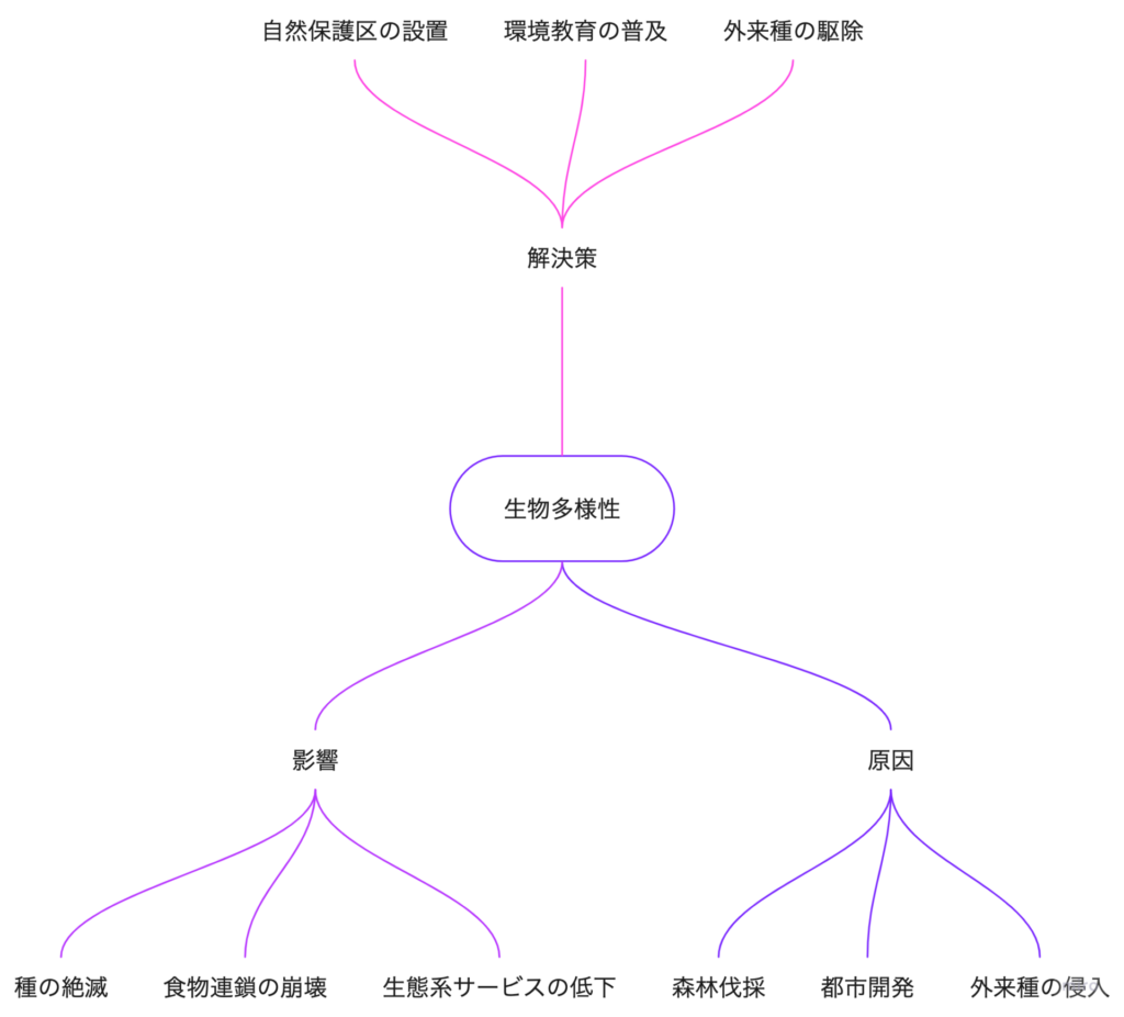 たとえば「生物多様性」をテーマにし、中心に置きます。